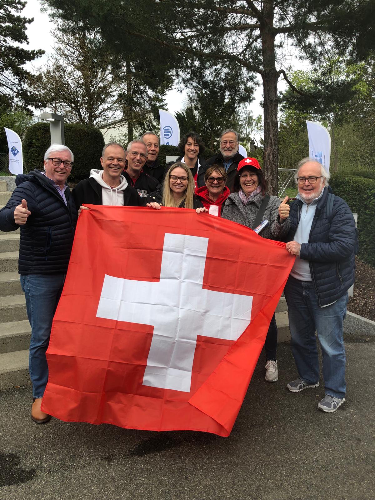 Carichi di entusiasmo si sono appostati, dopo un buon pranzetto presso il ristorante del palazzetto, pronti per tifare la nostra nazionale con tanto di bandiere e abbigliamento per l’occasione: match Svizzera-Olanda iniziato alle ore 14.00 e che si è giocato fino all’ultimo